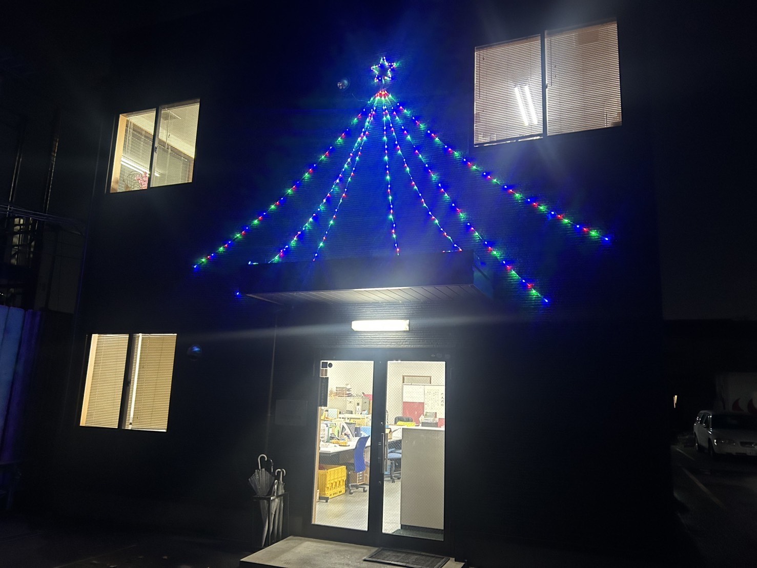 少しでも明るい気持ちで毎日を過ごしていただけるよう、杉本常務が事務所の入口にイルミネーションを飾ってくれました✨