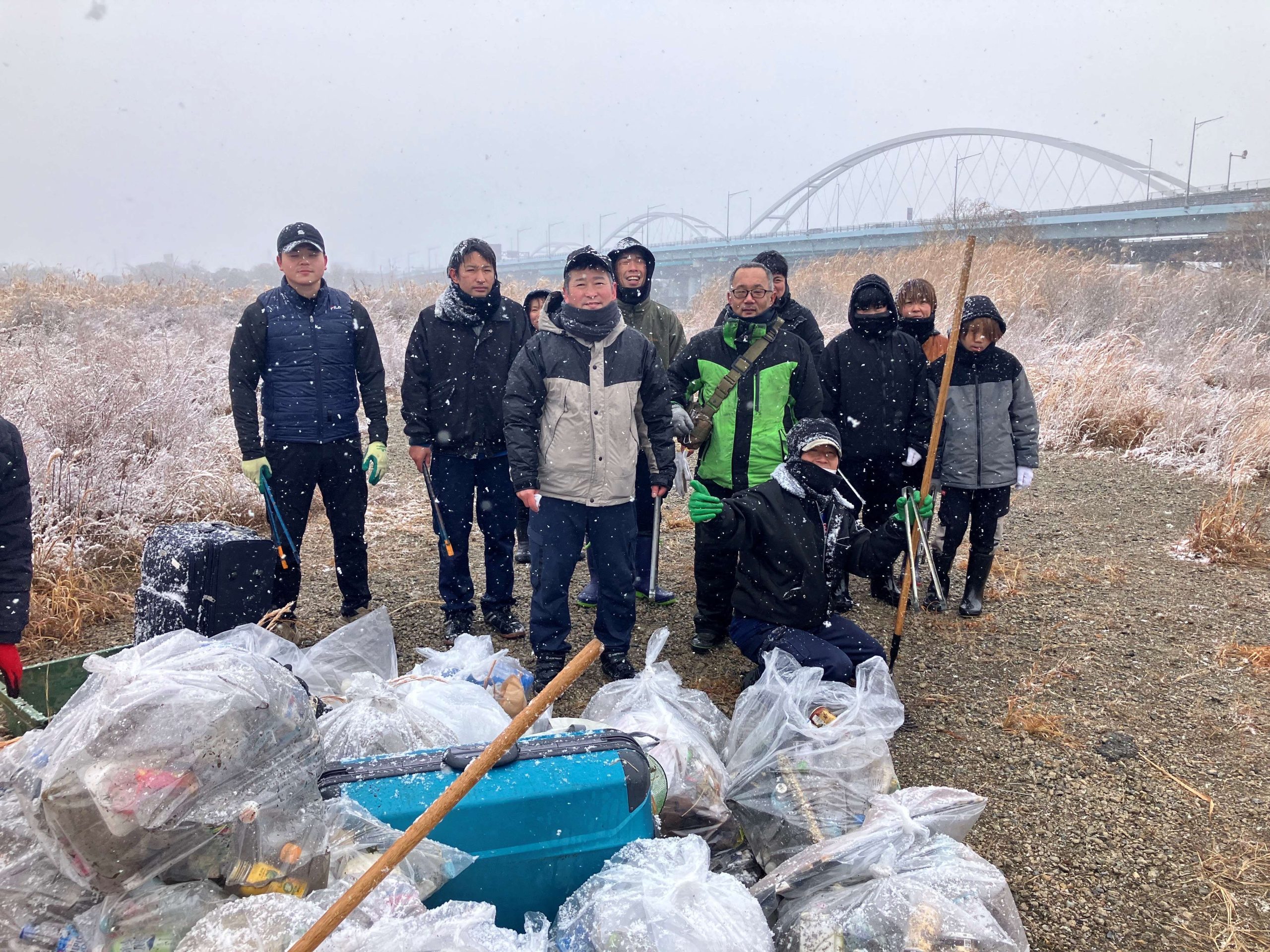 作業を終えたあとの河川敷は、来たときよりもすっきりとした景色に。冷たい風は相変わらずでしたが、不思議と気持ちはとても晴れやかでした。「寒かったけど参加してよかったね」という声も多く、達成感とともに、地域の一員として少しでも貢献できたことを嬉しく思いました。